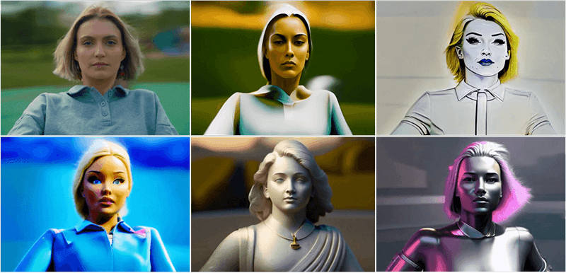 단어와 이미지를 이용하여 기존 동영상으로부터 새로운 동영상을 생성해 낼 수가 있습니다. 먼저 동영상을 선택하고, 입력한 동영상을 변형하는 순서인데 이 방법에는 세 가지가 있습니다. 기존 이미지를 선택하거나, 텍스트 프롬프트를 작성하거나, 런웨이의 사전 설정 스타일 중 하나를 선택합니다. 보시는 그림과 같이 원본 동영상에서 다양한 베리에이션 동영상을 얻을 수 있습니다.