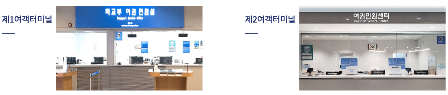 - 인천공항 제2여객 터미널: 2층 정부종합행정센터 (032-740-2782~3)